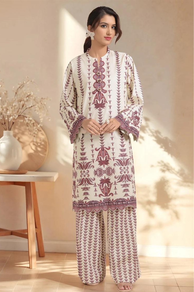 BONANZA ORIGINAL - A stylish winter cambric suit set featuring an embellished shirt. Paired with printed cambric trouser.