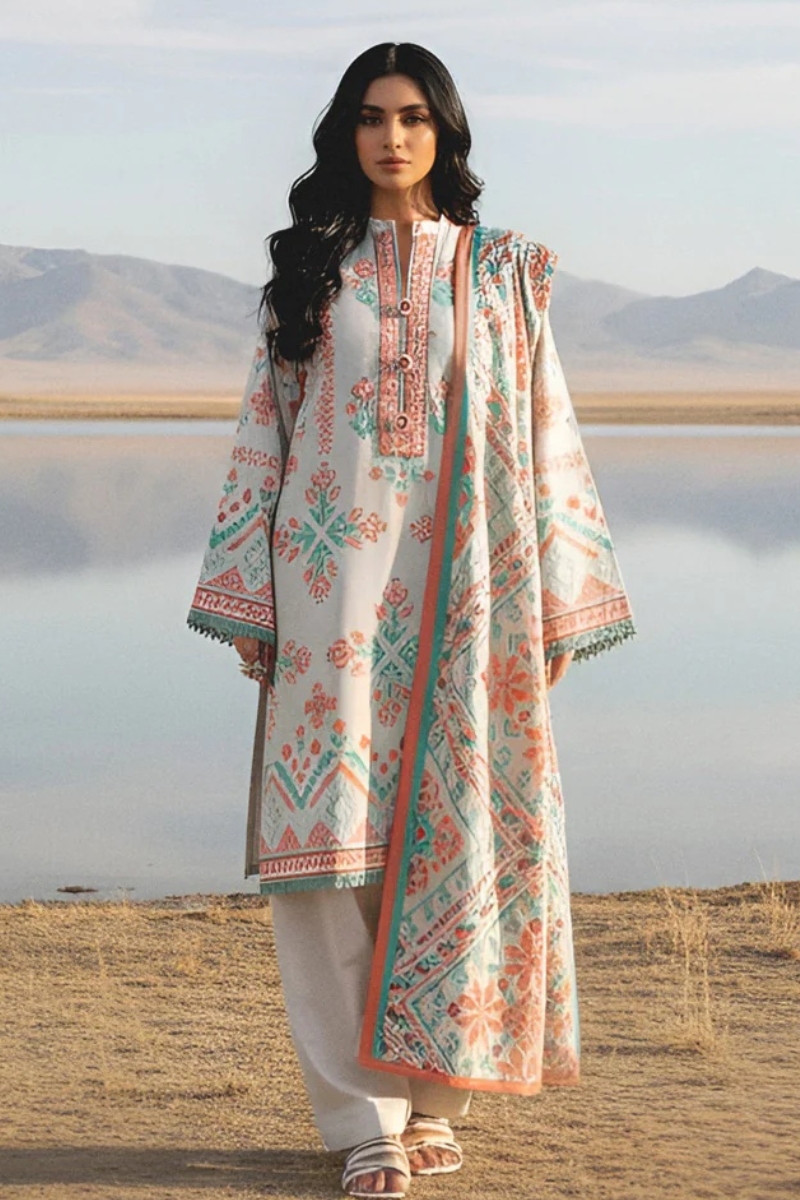 BONANZA ORIGINAL - A stylish winter cambric 3 pc suit set featuring an embellished shirt. Paired with printed viscose trouser and printed cambric shawl