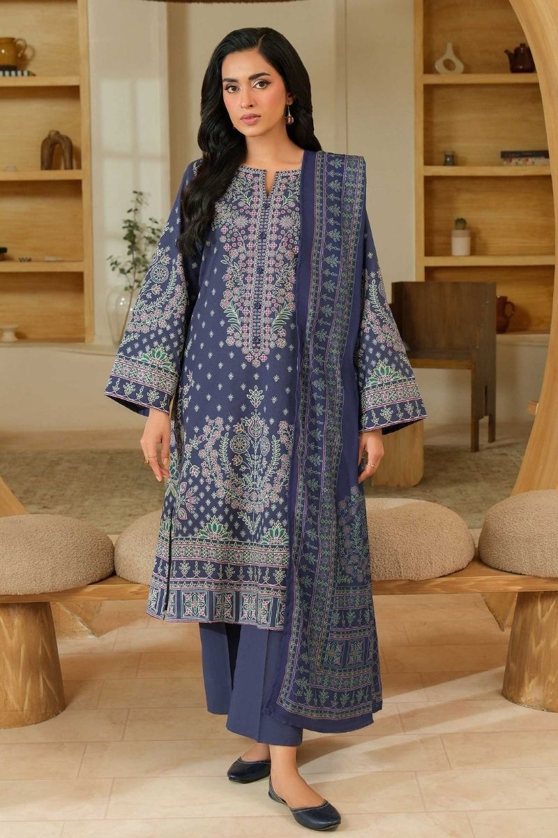 GUL AHMED ORIGINAL- A stylish ensemble featuring a printed khaddar shirt, paied with wool and printed trousers. Stitched in same pattern as seen in pictures)