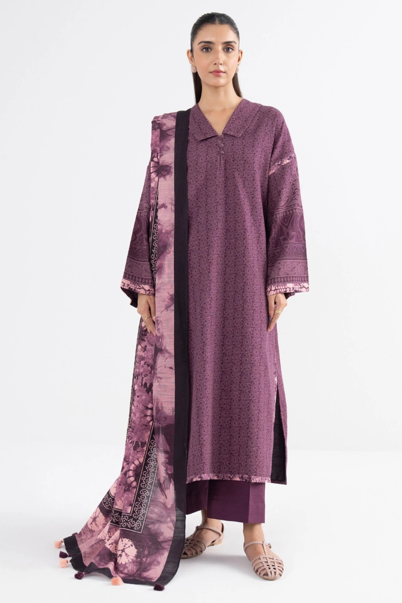 SAPPHIRE ORIGINAL - Make a statement with our 3-piece printed KHADDAR SUIT ensemble featuring a printed khaddar shirt paired with khaddar trouser and printed shawl.