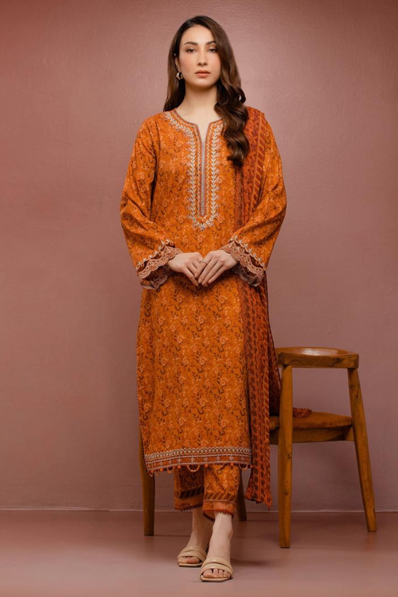 EDENROBE ORIGINAL - Embrace timeless elegance in this printed Cambric set, where the delicate fabric is adorned with beautiful organza embroidery at every edge. The matching printed trousers and airy chiffon dupatta create a perfectly unified and feminine outfit.