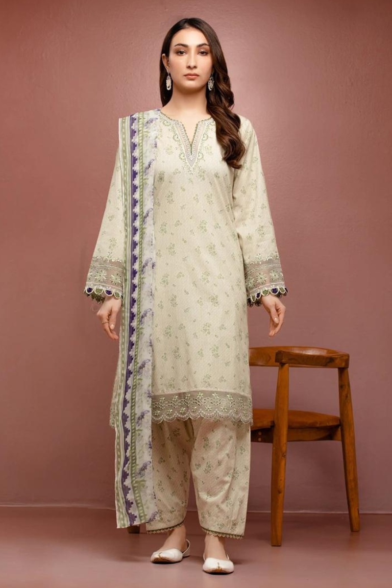 EDENROBE ORIGINAL - A beautifully balanced ensemble where the printed Cambric shirt and trousers create a harmonious silhouette, elevated by intricate organza borders. The lightweight printed chiffon dupatta adds an ethereal finish to this modern, polished look.